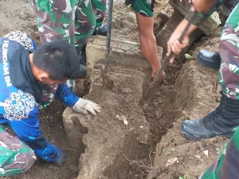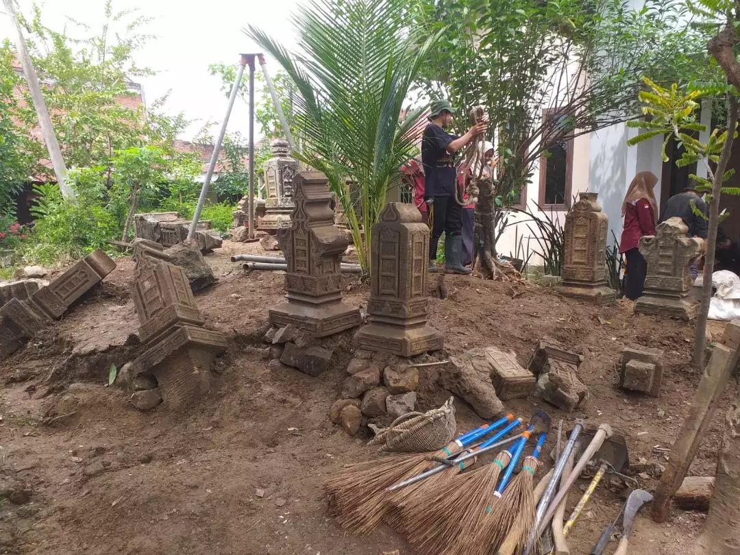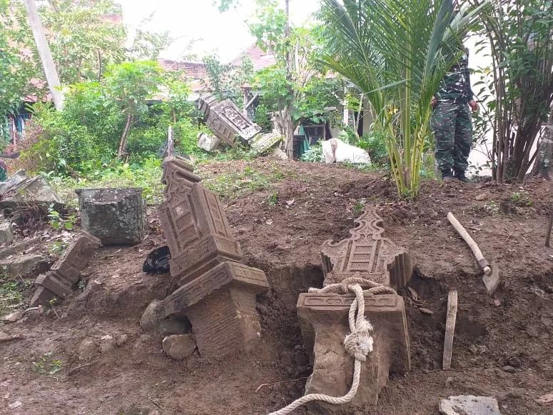 Berbekal peralatan tradisional seadanya, nisan-nisan yang memiliki nilai sejarah tinggi ini diangkat setelah tertimbun tanah sedalam beberapa meter.