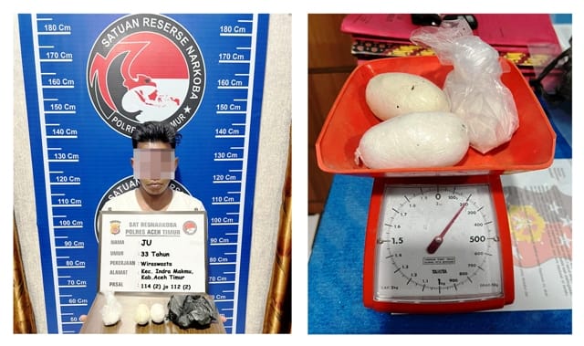 “Saat ini, pelaku berikut barang bukti sudah diamankan di Satresnarkoba Polres Aceh Timur untuk proses pengembangan dan penyidikkan lebih lanjut,” ujar Kapolres.