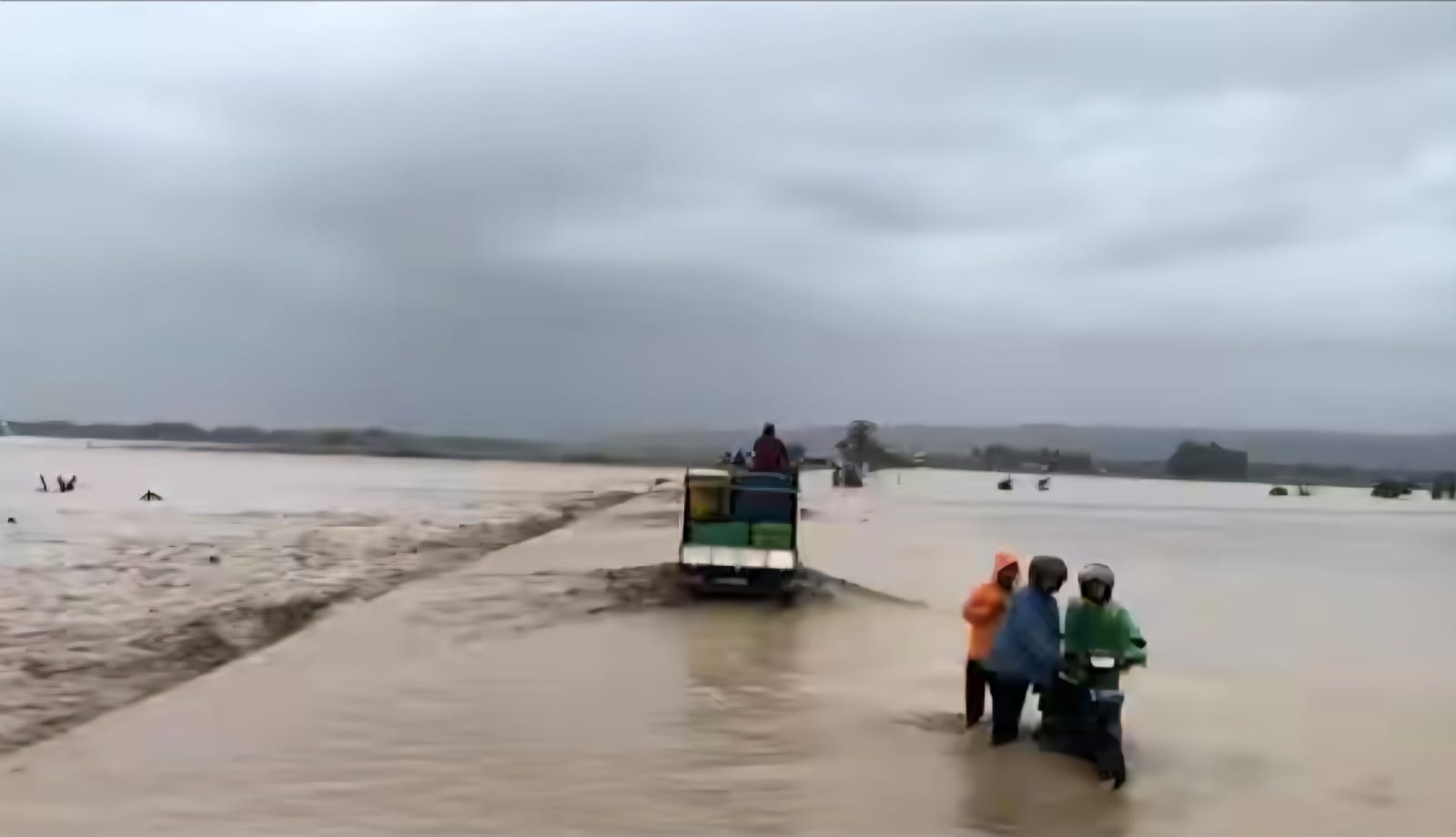 Arus transportasi nasional terputus total selama berjam-jam, memaksa ratusan bus antarkota, truk logistik, dan kendaraan pribadi tertahan di Meureudu.