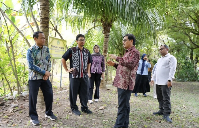 Tim meninjau langsung sejumlah lahan yang direncanakan untuk pembangunan gedung baru serta bangunan lama yang akan direhabilitasi atau dihapuskan.