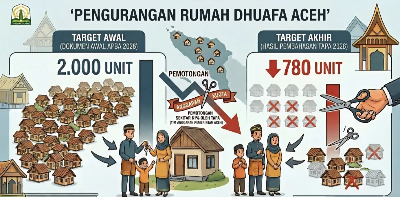 Program pembangunan 2.000 unit rumah dhuafa yang sebelumnya menjadi target dalam RPJM Aceh dan telah melalui proses evaluasi di Kementerian Dalam Negeri Republik Indonesia (Kemendagri), disebut-sebut mengalami pemangkasan signifikan di tingkat Tim Anggaran Pemerintah Aceh (TAPA).