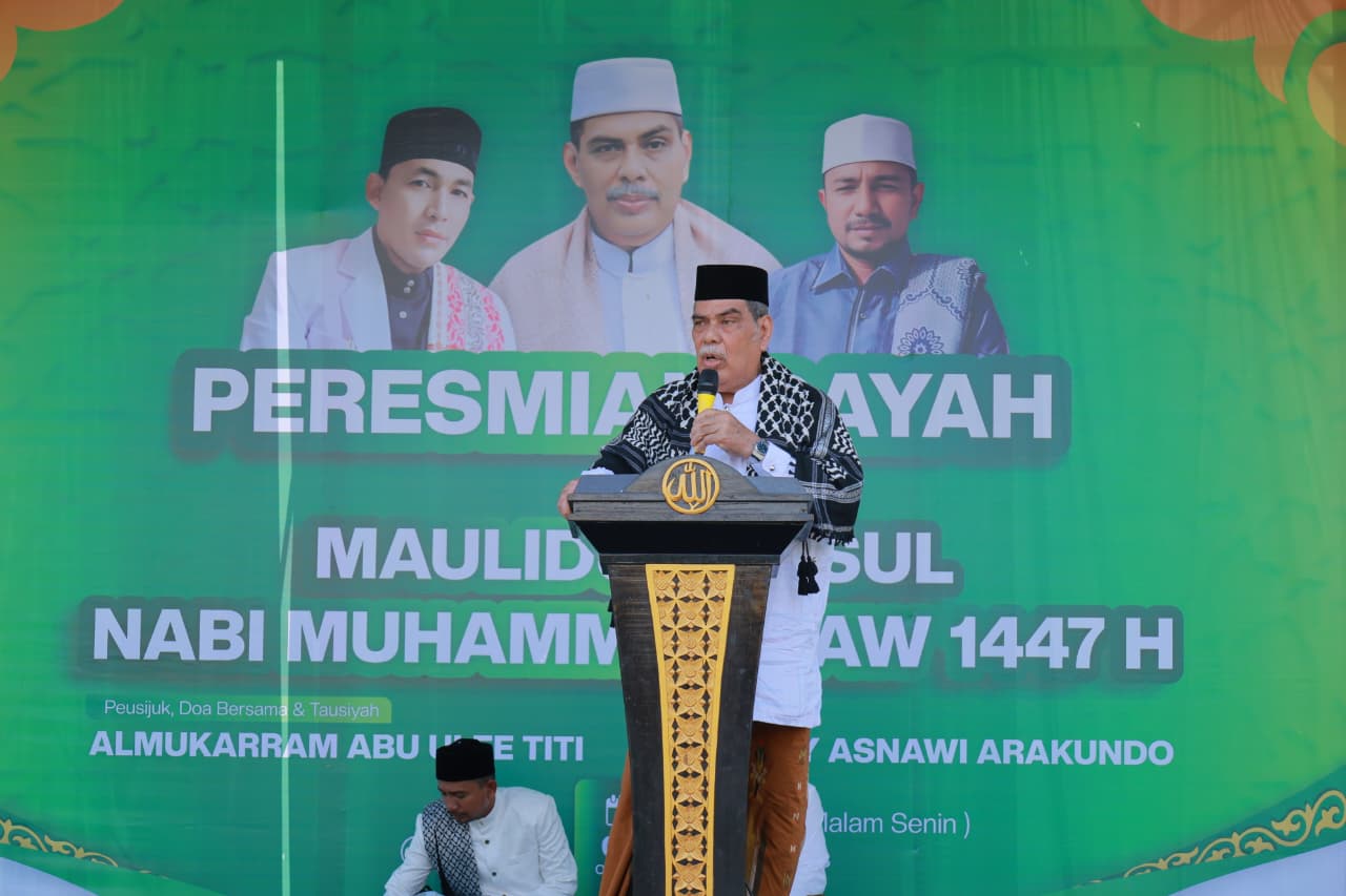 Acara peresmian turut diisi dengan tausiyah oleh Tgk Walidy Asnawi Arakundo, yang mengajak masyarakat memperbanyak salawat dan meneladani akhlak Rasulullah SAW dalam kehidupan sehari-hari.