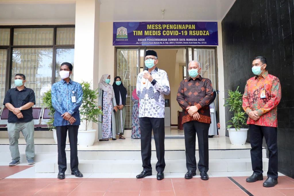 Plt. Gubernur Aceh, Nova Iriansyah, meresmikan tiga gedung BPSDM Aceh yang dijadikan tempat istirahat tim medis Covid- 19, Kamis (2/4)