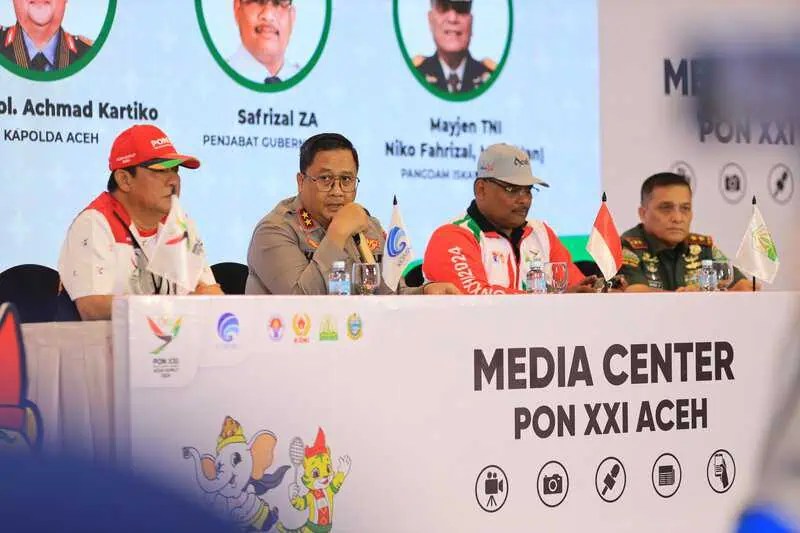 “Pengamanan dan pengawalan merupakan upaya Polri untuk memberikan rasa aman dan nyaman kepada atlet dan official. Selain itu, rasa aman dan nyaman juga penting agar masyarakat atau penonton enjoy (menikmati) pertandingan PON,” kata Kapolda Aceh Irjen Achmad Kartiko saat konferensi pers di Media Center Kementerian Kominfo di Hotel Hermes Palace Banda Aceh, Rabu, 18 September 2024.