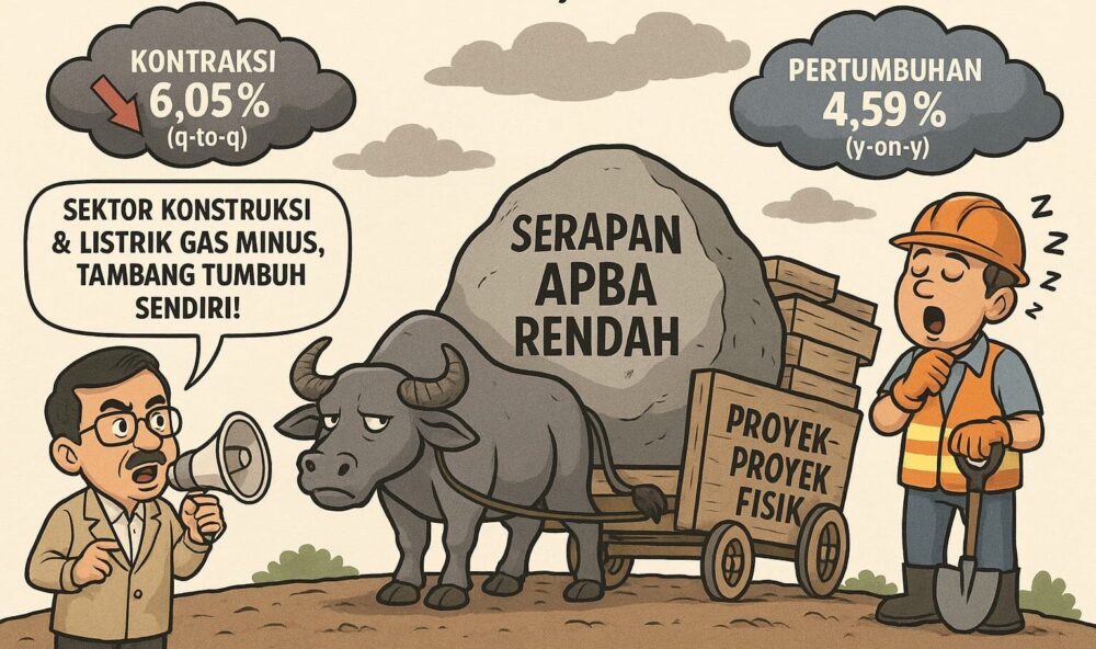 Pertumbuhan yang melambat itu akibat realisasi serapan Anggaran Pendapatan dan Belanja Aceh (APBA) 2025 yang masih sangat rendah, dan banyak proyek-proyek fisik atau konstruksi yang belum dimulai pekerjaannya.