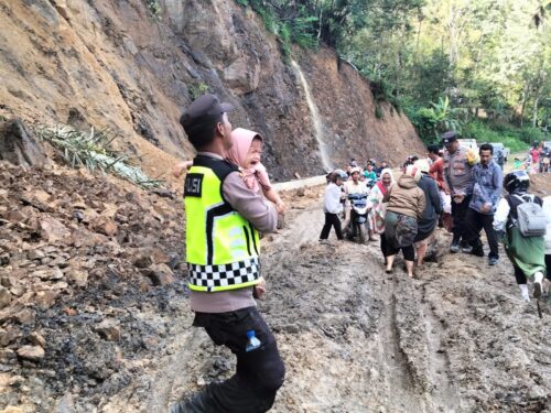 “Setelah mendapatkan laporan bahwa adanya tanah longsor tersebut, personel Polsek Silih Nara langsung bergerak cepat menuju ke lokasi untuk melaksanakan pengaturan arus lalu lintas serta membantu evakuasi warga dan kendaraan roda dua untuk menyeberang jalan,” terang Kapolsek.