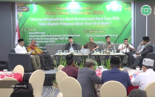 Kajian Aktual dalam bentuk Focus Group Discussion (FGD) diselenggarakan mengambil tema “Wacana Menghadirkan Kembali Bank Konvensional ke Aceh demi PON, Tidak Siapkan Pelayanan Bank Syariah?”.