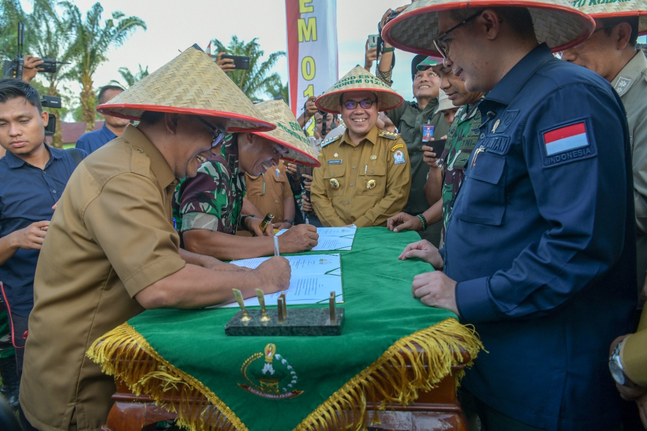 Prosesi penandatanganan kerja sama tersebut disaksikan Wakil Menteri Pertanian Harvick Hasnul Qolbi dan Pangdam Iskandar Muda (IM) Mayjen TNI Mohammad Hasan, di Makorem 012/Teuku Umar, Meulaboh, Senin (31/10/2022).