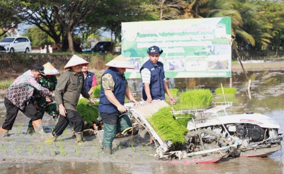 Tanam perdana Demplot penyuluh swadaya itu menggunakan rice translanter dengan luas lahan 25 ha.