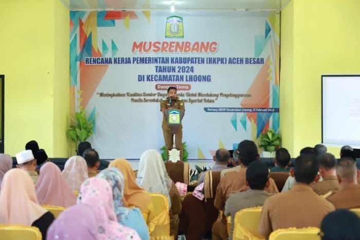 LHOONG – Pj Bupati Aceh Besar Muhammad Iswanto membuka pelaksanaan Musrenbang Perdana Rencana Kerja Pemerintah Kabupaten (RKPK) Aceh Besar Tahun 2024 di Kecamatan Lhoong, Selasa (21/2/2023).