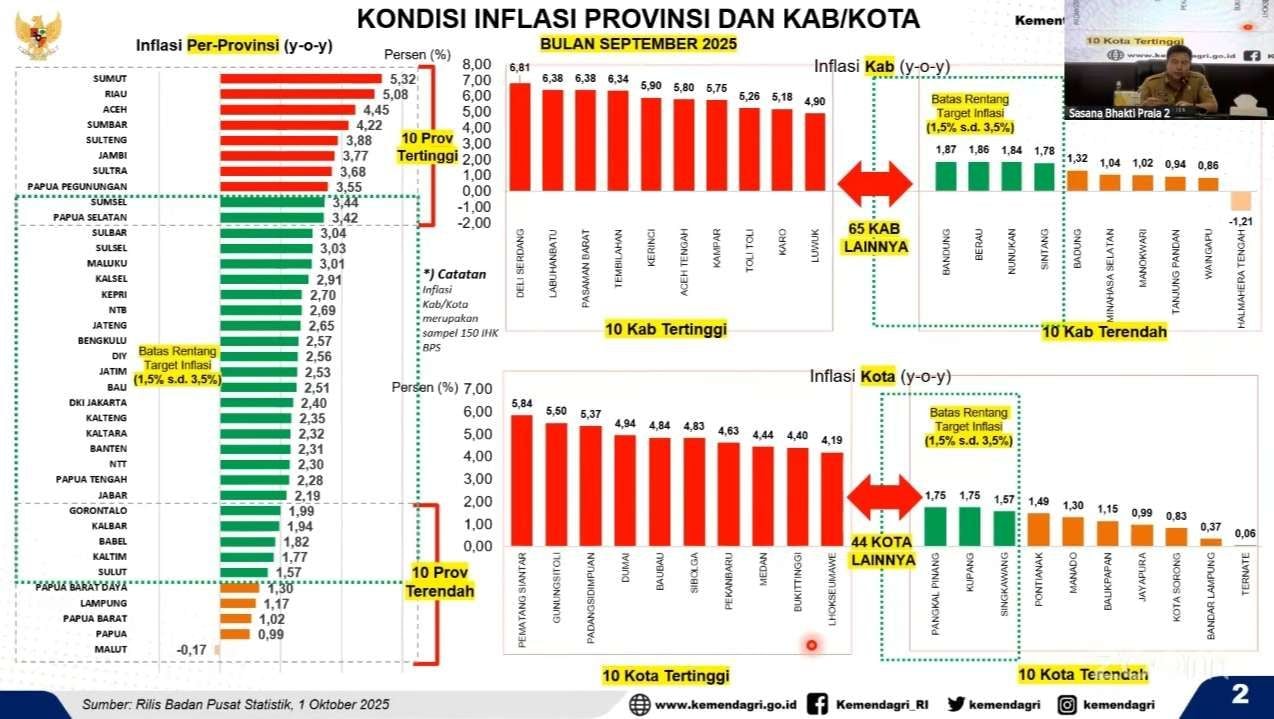 Kementerian Dalam Negeri (Kemendagri) menegur sejumlah pemerintah daerah di Tanah Air karena tingginya angka inflasi per September 2025.