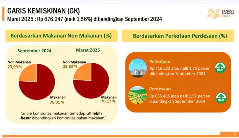 Namun data menunjukkan bahwa pengeluaran untuk makanan masih mendominasi, dengan kontribusi 76,17 persen terhadap total garis kemiskinan.