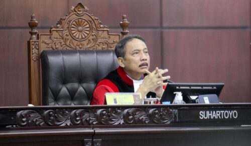 “Yang jadi Ketua Mahkamah Konstitusi ke depan adalah Bapak Suhartoyo. Sementara saya tetap jadi wakil ketua,” kata hakim konstitusi Saldi Isra dalam konferensi pers.