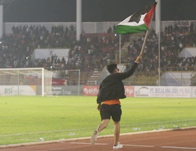 Suporter yang memasuki area lapangan tanpa izin itu mengibarkan bendera Palestina mengitari lapangan saat Persiraja vs Semen Padang pada 21 Oktober lalu. Aksi itu terjadi setelah pertandingan selesai.