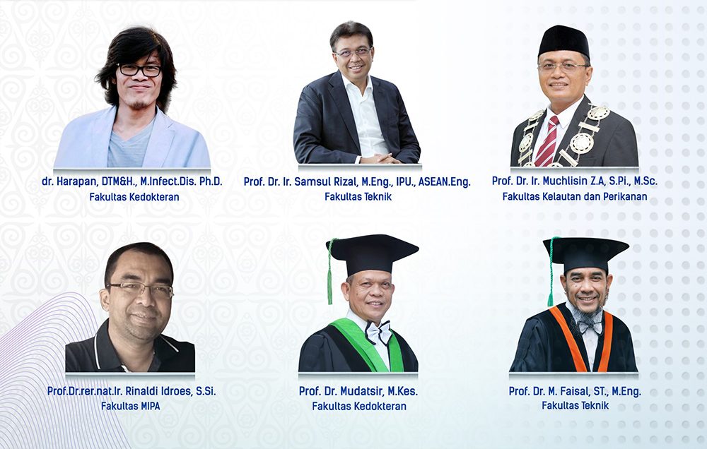 Prof Dr Muchlisin ZA SPi MSc dari Fakultas Kelautan dan Perikanan serta Prof Dr Ir Rinaldi Idroes M.Si dari Fakultas Matematika dan Ilmu Pengetahuan Alam (MIPA)