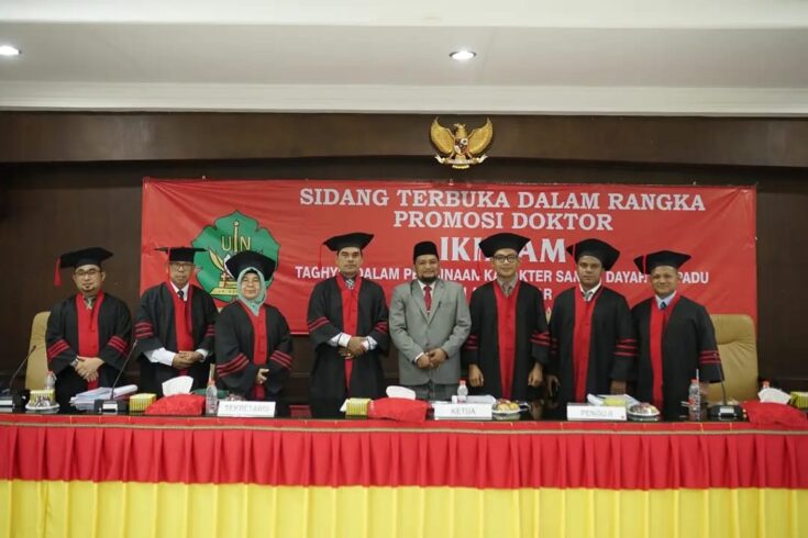 Selanjutnya bertindak sebagai Promotor 1 Prof Dr T Zulfikar MEd dan Promotor 2 Dr HA Mufakhir Muhammad MA, Dewan Penguji Prof Dr Fauzi Shaleh Lc MA, Dr Muhajir Alfairusy MHum, Dr Silahuddin MAg dan Dr Sehat Ihsan Shadikin MAg.