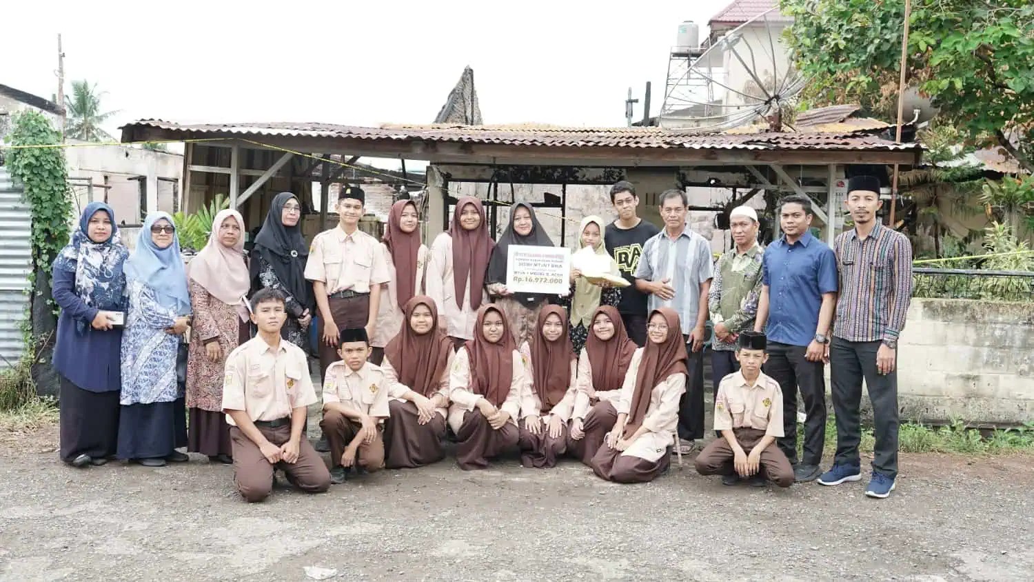Infoaceh.net, BANDA ACEH – Keluarga Besar MTsN 1 Model Banda Aceh, mulai dari guru, tenaga kependidikan, karyawan, guru pendamping dan para pelajar menyantuni salah satu siswi madrasah itu yang rumahnya terbakar.