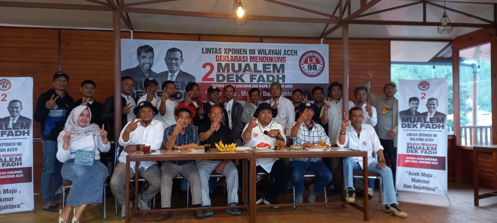 Infoaceh.net, Banda Aceh — Puluhan mantan aktivis yang bergabung dalam Xponen ‘98 Aceh menyatakan dukungan pada pasangan Calon Gubernur/Wakil Gubernur Aceh nomor urut 02, Muzakir Manaf (Mualem) – Fadhlullah (Dek Fad).