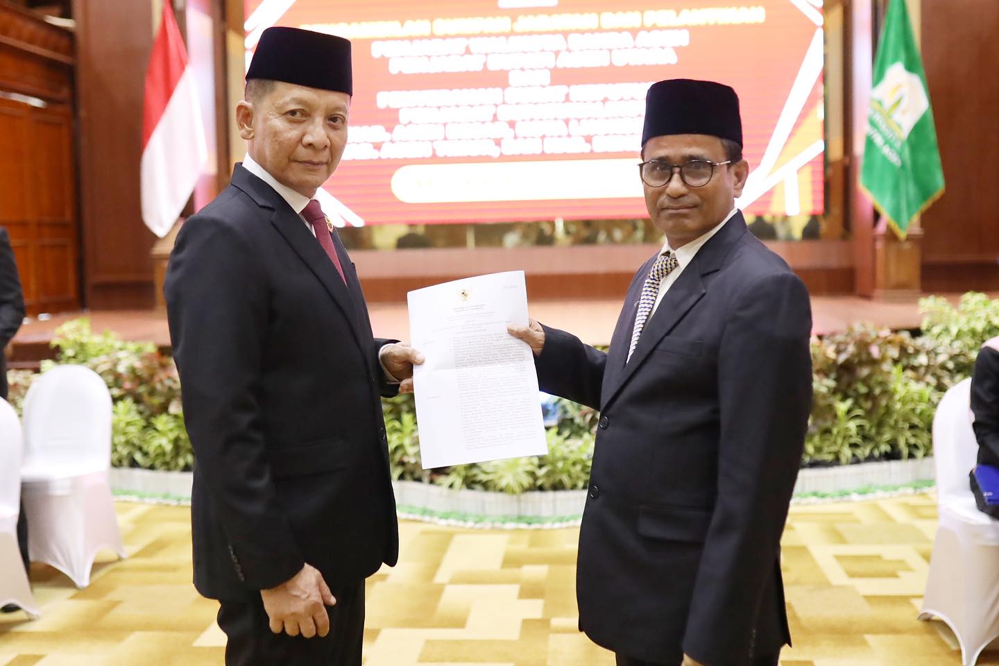 Penyerahan SK perpanjangan masa jabatan Mahyuddin sebagai Pj Bupati Aceh Timur periode 2023-2024 dilakukan pada pukul 16.30 WIB di Anjong Mon Mata Banda Aceh, Jum’at (14/7/2023).