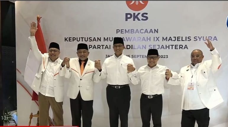 “Hasil keputusan, memperkuat keputusan Majelis Syuro ke-8 yang mengusung Bapak Anies Baswedan sebagai bacapres pada Pilpres 2024. Kedua, memutuskan Bapak Abdul Muhaimin Iskandar sebagai bakal calon Wakil Presiden Repubik Indonesia mendampingi Anies Baswedan pada Pilpres 2024,” kata Presiden PKS Ahmad Syaikhu, di DPP PKS, Jakarta Selatan, Jum’at (15/9/2023).
