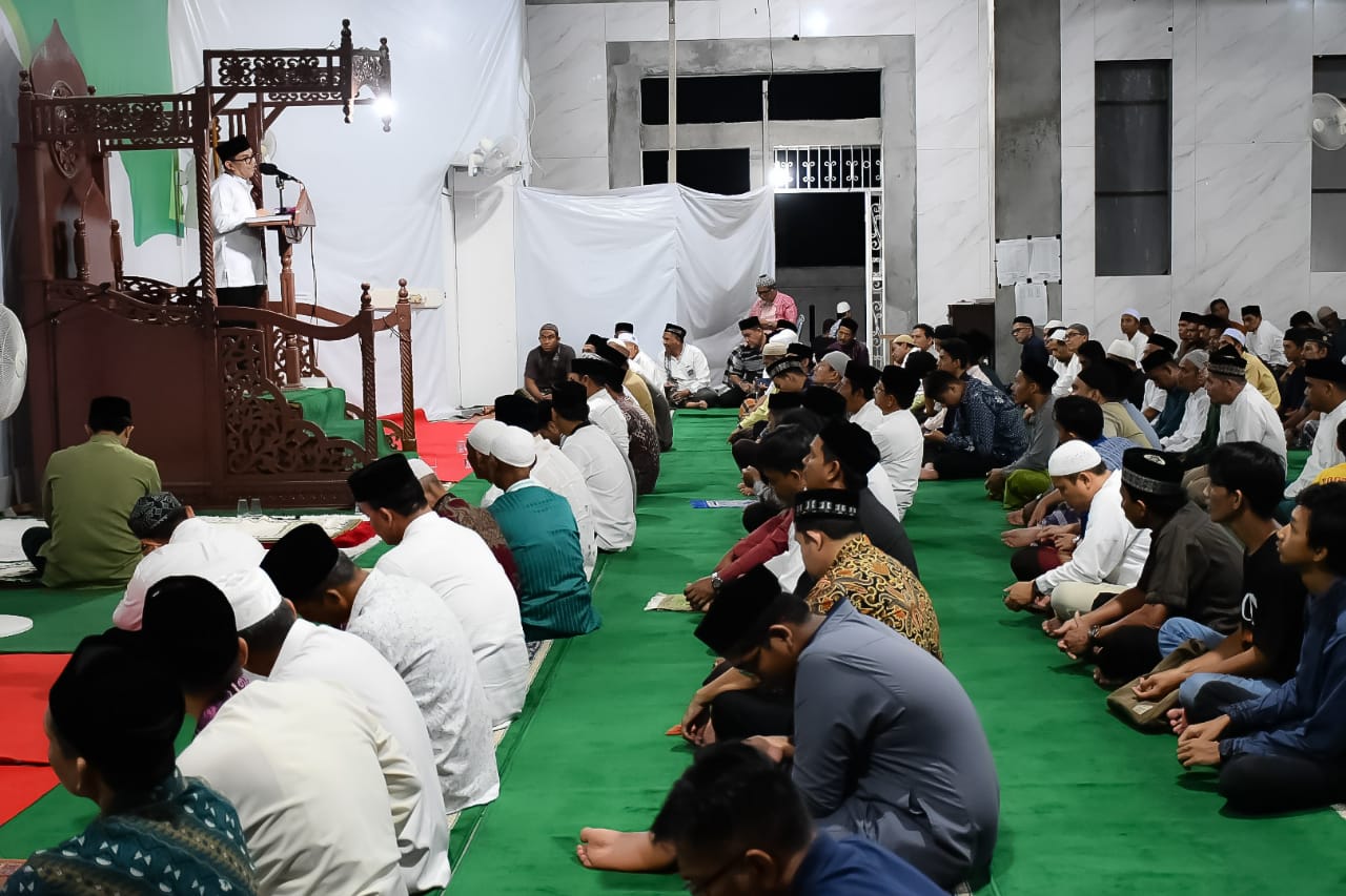 BANDA ACEH – Pj Wali Kota Banda Aceh Bakri Siddiq berserta para kepala dinas pada malam puasa Ramadan ke-10, melaksanakan Shalat Isya, Tarawih, dan Witir bersama warga Gampong Lamteh, Kecamatan Ulee Kareng, di Masjid Baitul Mukminin, Jum’at malam (31/3/2023).