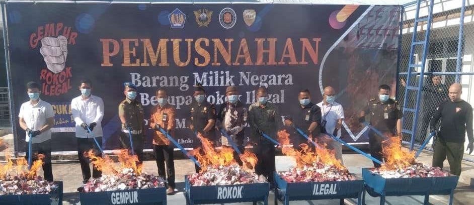 1,1 Juta Batang Rokok Ilegal Senilai Rp 1,2 Miliar Dimusnahkan di Lhokseumawe