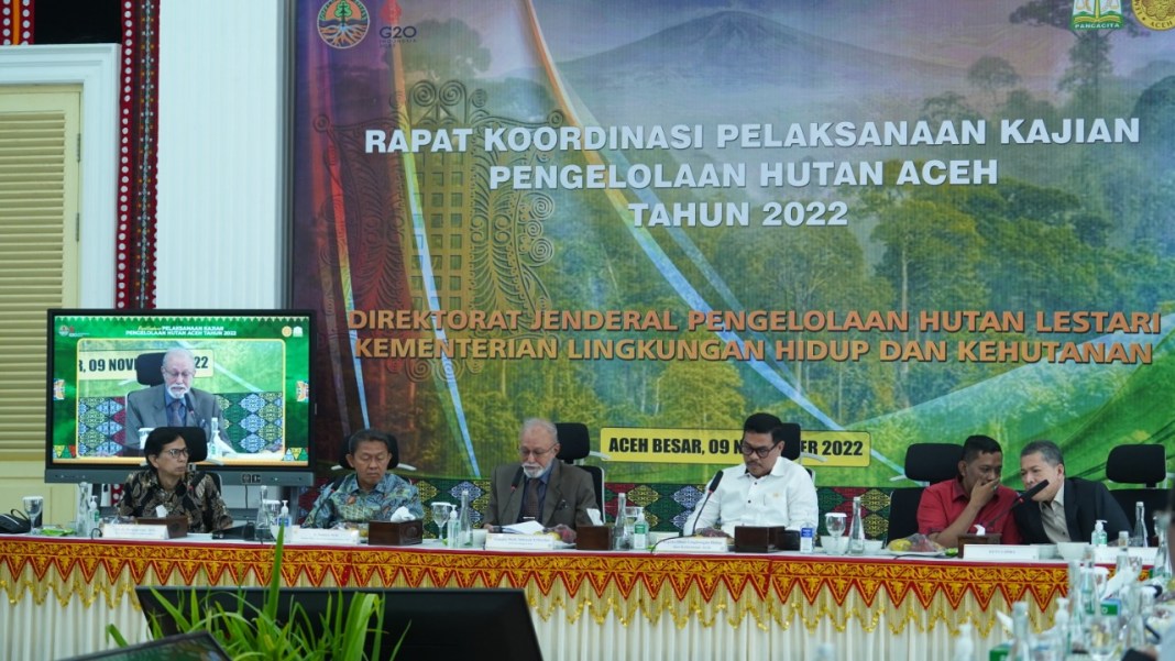 Wali Nanggroe bersama Kementerian Lingkungan Hidup dan Kehutanan (KLHK) RI, Ketua DPRA Saiful Bahri, Kepala Dinas LHK Aceh Hanan, serta Rektor Universitas Syiah Kuala (USK) Banda Aceh Prof Dr Ir Marwan berkumpul di Meuligoe Wali Nanggroe dalam forum “Kajian Model Pengelolaan Sumber Daya Hutan dan Implementasinya Dalam Bingkai Keistimewaan Aceh”, Rabu (9/11/2022).