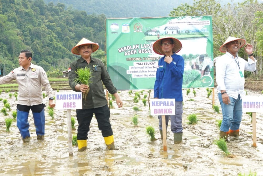 Hal tersebut disampaikan Jakfar usai melakukan penanaman padi bersama Program Sekolah Lapang Iklim. Turut serta Kepala BMKG, Perwakilan Balai Sungai Sumatera I, Perwakilan Komisi V DPR-RI, Camat beserta Muspika Leupung, Pengurus BPP dan Manteri Tani Leupung, Imuem Mukim serta Keuchik Meunasah Bak U.