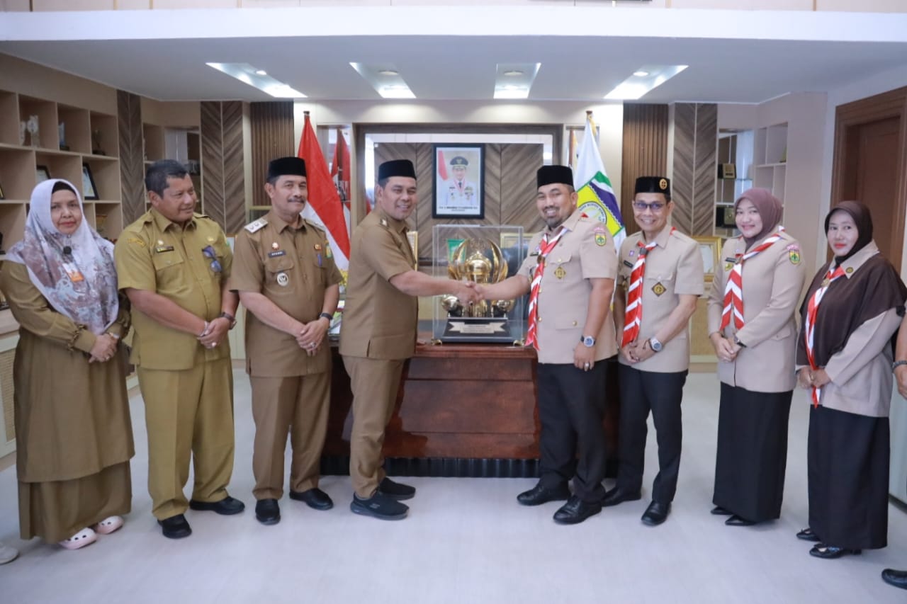 Hal tersebut diungkapkan Bupati Muharram Idris didampingi Wakil Bupati Aceh Besar Syukri A. Jalil dan Sekda Aceh Besar Bahrul Jamil ketika menerima kunjungan silaturahmi Ketua Kwarcab Pramuka Aceh Besar Muhammad Iswanto dan para pengurus di ruang kerja Bupati Aceh Besar, Selasa (23/9/2025).