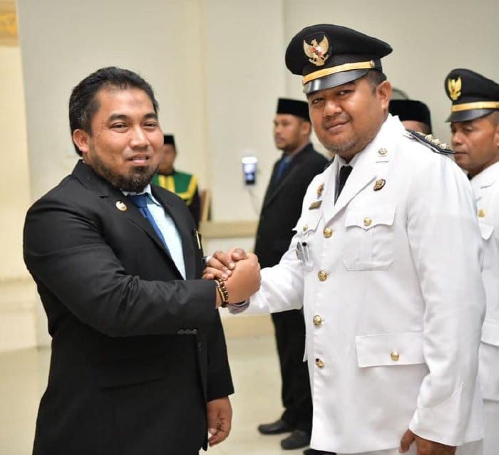 Almarhum Budi Santosa (kanan) usai dilantik sebagai Camat Lhoknga oleh Pj Bupati Aceh Besar Muhammad Iswanto beberapa waktu lalu