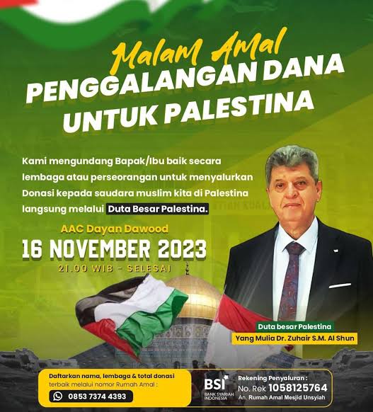 BANDA ACEH — Duta Besar Palestina untuk Indonesia Dr Zuhair SM Al Shun akan hadir ke Universitas Syiah Kuala (USK) Banda Aceh pada Kamis, 16 November 2023 untuk melakukan penandatanganan MoU antara Pemerintah Palestina dengan USK, serta menghadiri aksi penggalangan dana untuk warga Palestina.