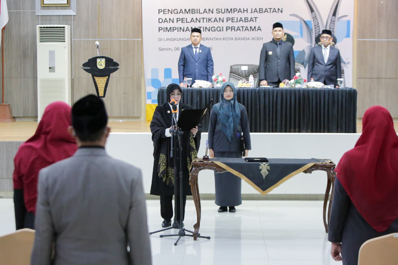 Penegasan itu disampaikan Illiza dalam acara pelantikan dan pengambilan sumpah jabatan 17 pejabat tinggi pratama (eselon II) di Aula Balai Kota Banda Aceh, Senin (6/10/2025).