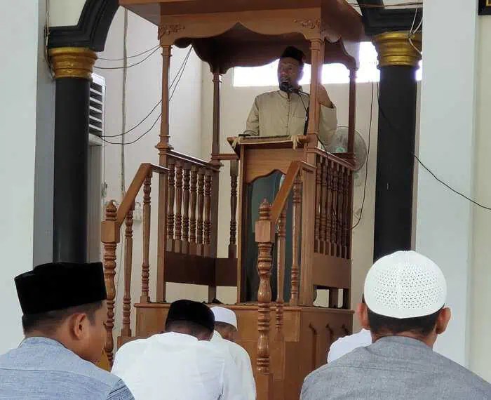INFOACEH.NET, ACEH BESAR — Calon wakil gubernur Aceh nomor urut 01 yang juga mantan senator DPD RI, Fadhil Rahmi atau akrab disapa Syech Fadhil, menjadi khatib shalat Jum’at di Masjid Pasie Jantang, Kecamatan Lhoong, Aceh Besar, Jum’at, 4 Oktober 2024.