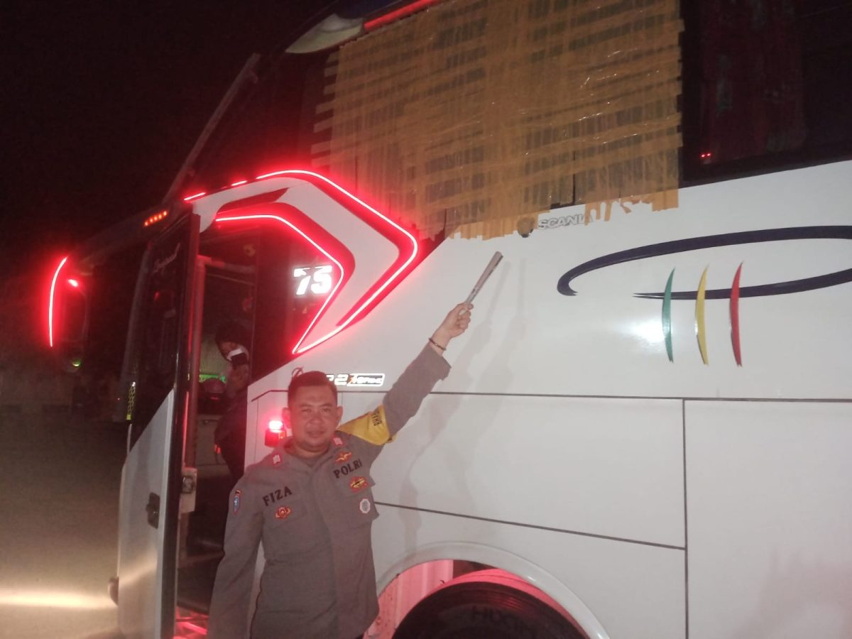 LHOKSUKON – Bus penumpang Putra Pelangi yang melintas dari arah Medan menuju Lhokseumawe dilempari batu oleh kawanan remaja di kawasan Gampong Meunasah Nga Kecamatan Lhoksukon, Aceh Utara, Jum’at malam 7 April 2023.