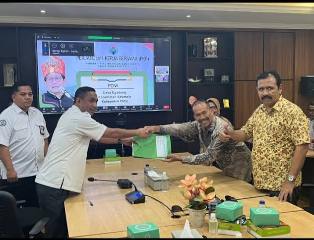 Dalam rangka pengembangan obyek wisata desa, Kepala Desa Gampong U Gadeng, Kecamatan Keumala Kabupaten Pidie melakukan Perjanjian Kerja Bersama (PKB) dengan Kemendes PDTT yang berlangsung di Kantor Kemendes setempat, Rabu (12/6/2023).
