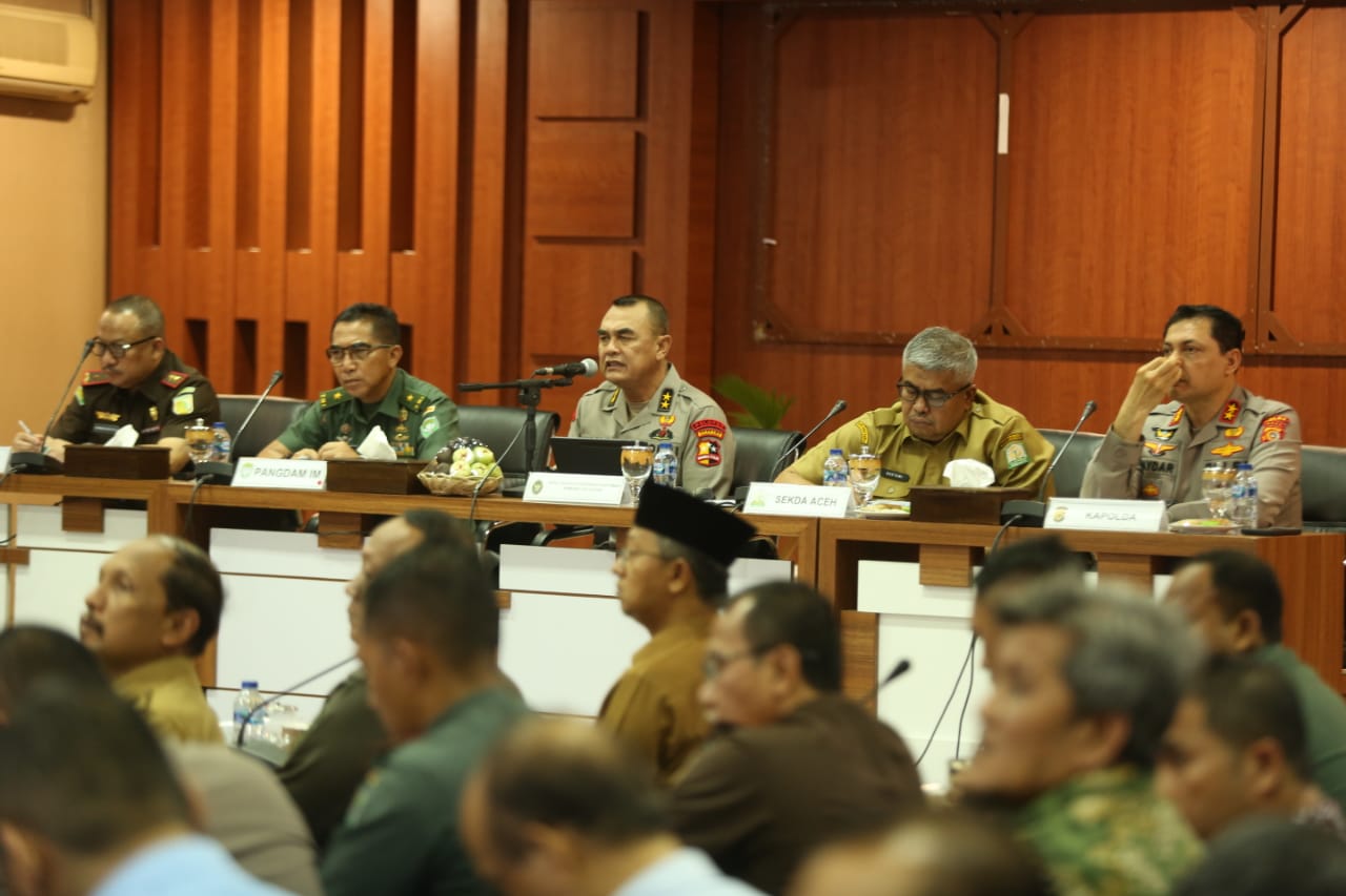 Rakor yang dipimpin Deputi Bidang Koordinasi Keamanan dan Ketertiban Masyarakat Kemenko Polhukam Irjen Pol Rudolf Alberth Rodja itu berlangsung di Aula Gedung Serbaguna Kantor Gubernur Aceh, Senin (19/6/2023).