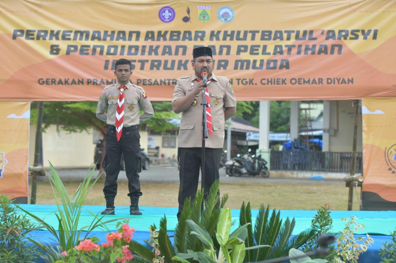 Indrapuri, Infoaceh.net — Ketua Kwartir Cabang (Ka Kwarcab) Pramuka Aceh Besar Muhammad Iswanto, menjadi pembina upacara pembukaan kegiatan perkemahan akbar Khutbatul ‘Arsyi serta pendidikan dan pelatihan instruktur muda (PPIM) 2025, di Pesantren Modern Tgk. Chiek Oemar Diyan, Indrapuri pada Kamis sore (7/8/2025).