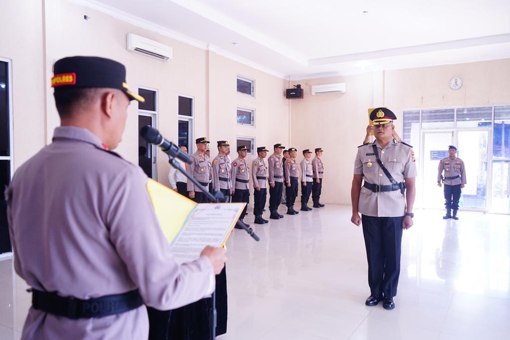 SIGLI — Kapolres Pidie AKBP Imam Asfali memimpin upacara penyerahan tugas jabatan Wakapolres Pidie yang berlangsung di Aula Wira Satya Polres Pidie, Kamis (30/3).