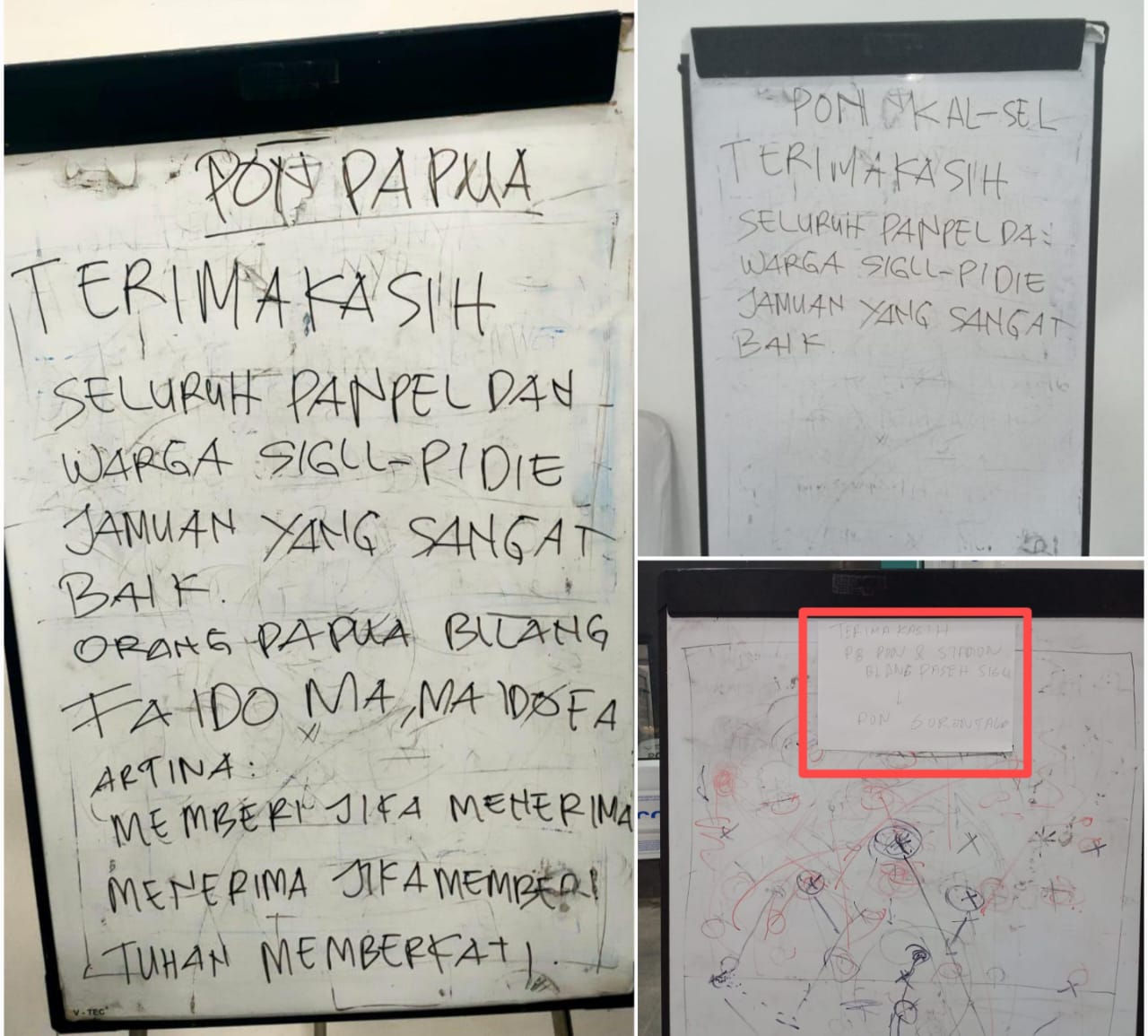 “Terima kasih seluruh panpel dan warga Sigli-Pidie, jamuan yang sangat baik. Orang Papua bilang fa ido ma, ma ido fa. Artinya memberi jika menerima, menerima jika memberi, Tuhan memberkati,” tulis kontingen Papua, menunjukkan rasa terima kasih yang mendalam dengan sentuhan budaya mereka.