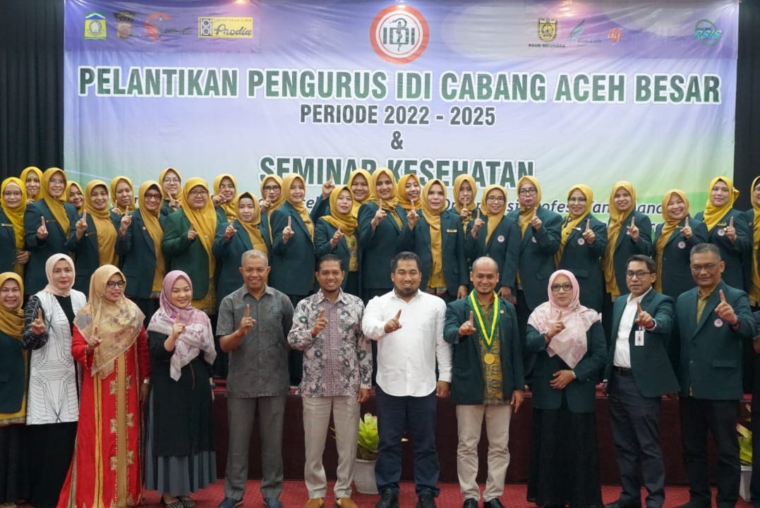 KOTA JANTHO — Pengurus Ikatan Dokter Indonesia (IDI) Kabupaten Aceh Besar periode 2023-2025 resmi dilantik di Hotel Grand Aceh Lamdom, Ahad, 12 Februari 2023.