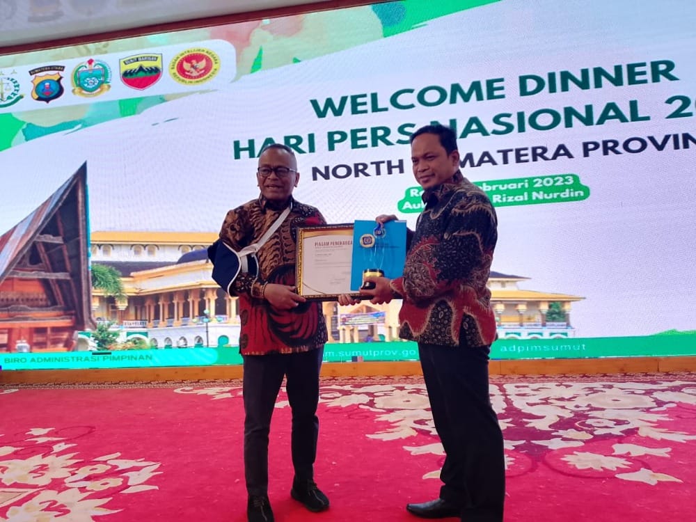 Penghargaan itu diserahkan langsung oleh Ketua Umum PWI Pusat, Atal S Depari pada malam welcome dinner dengan duta besar, Gubernur, Wali Kota/Bupati, PWI Pusat dan Provinsi serta delegasi CAJ di aula rumah dinas Gubernur Sumut, Rabu malam (8/2/2023).