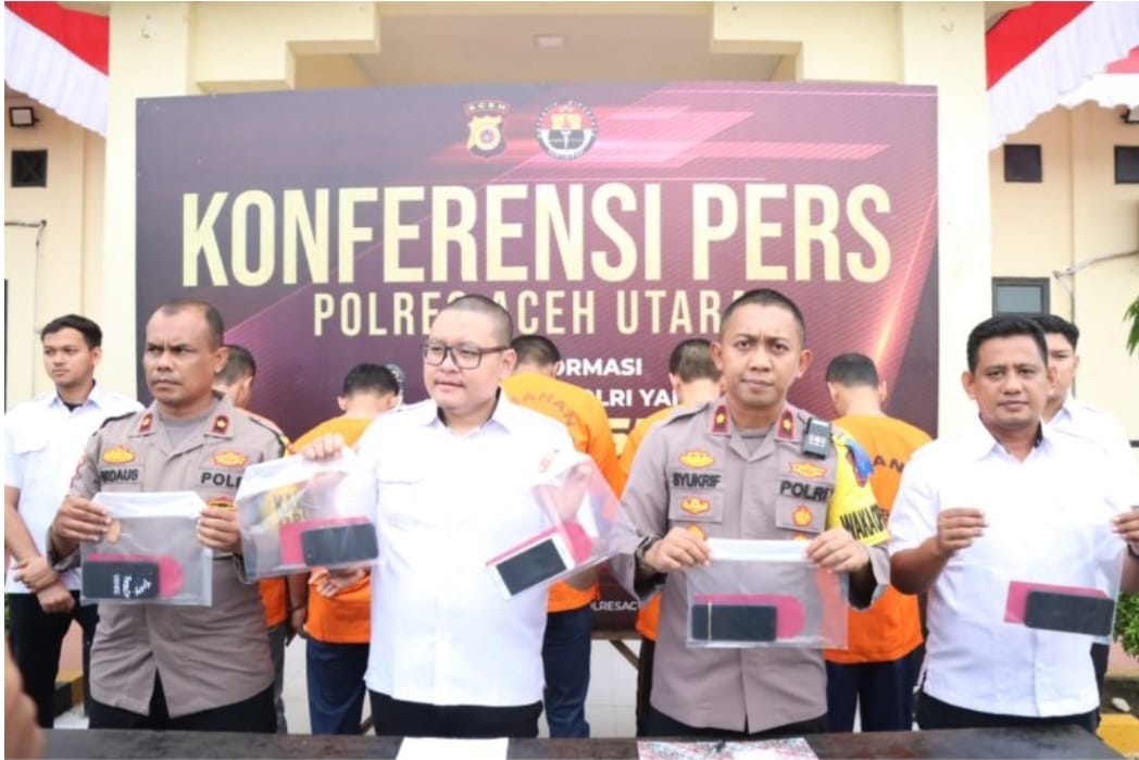 AN (26), FR (29) dan MZ (49), yang ketiganya sebagai penikmat. Kelima tersangka merupakan warga Kecamatan Lhoksukon Kabupaten Aceh Utara.