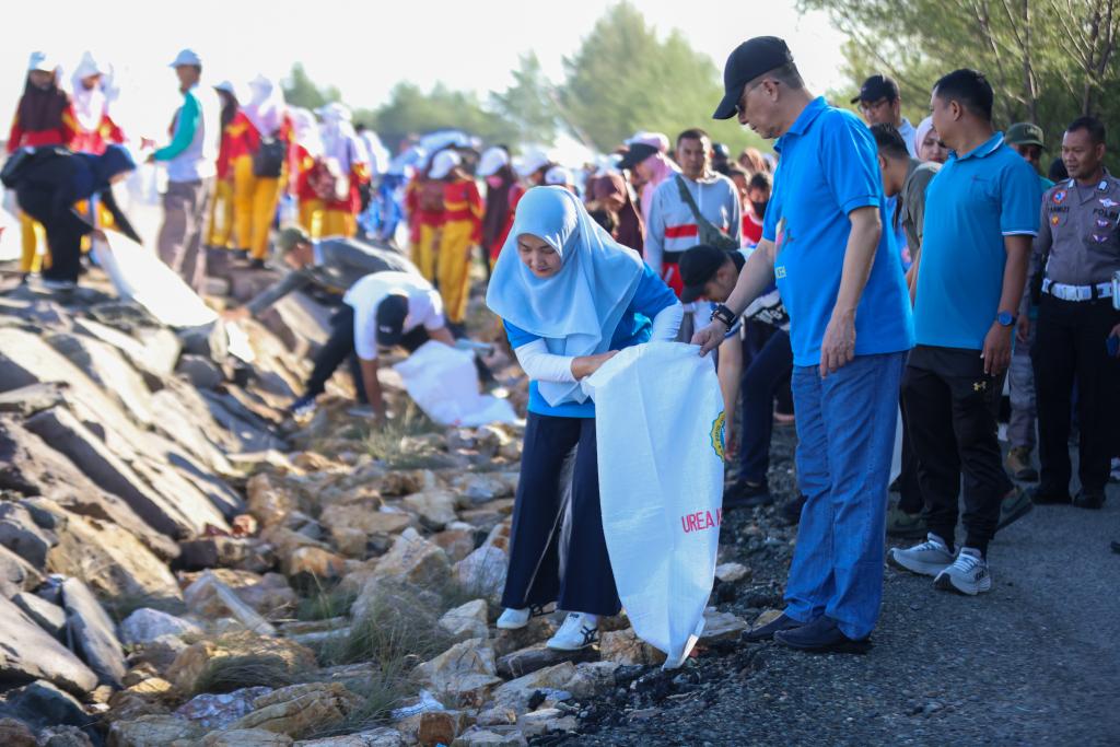 Usai memberi sambutan, Pj Gubernur Aceh yang hadir bersama istrinya Ayu Candra Febiola Nazuar serta sejumlah Kepala Satuan kerja perangkat Aceh dan para relawan, melakukan aksi pungut sampah di sekitar lokasi acara.