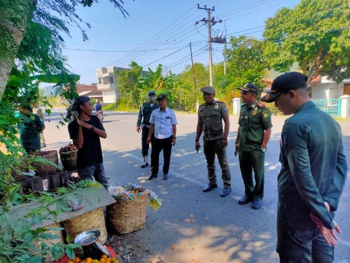 ACEH BESAR– Satuan Polisi Pamong Praja dan Wilayatul Hisbah (Satpol PP-WH) Aceh Besar menggelar patroli rutin harian dan memperingatkan pedagang buah yang berjualan di pinggir jalan protokol karena berpotensi menyebabkan kemacetan arus lalu lintas jika ada pembeli datang.