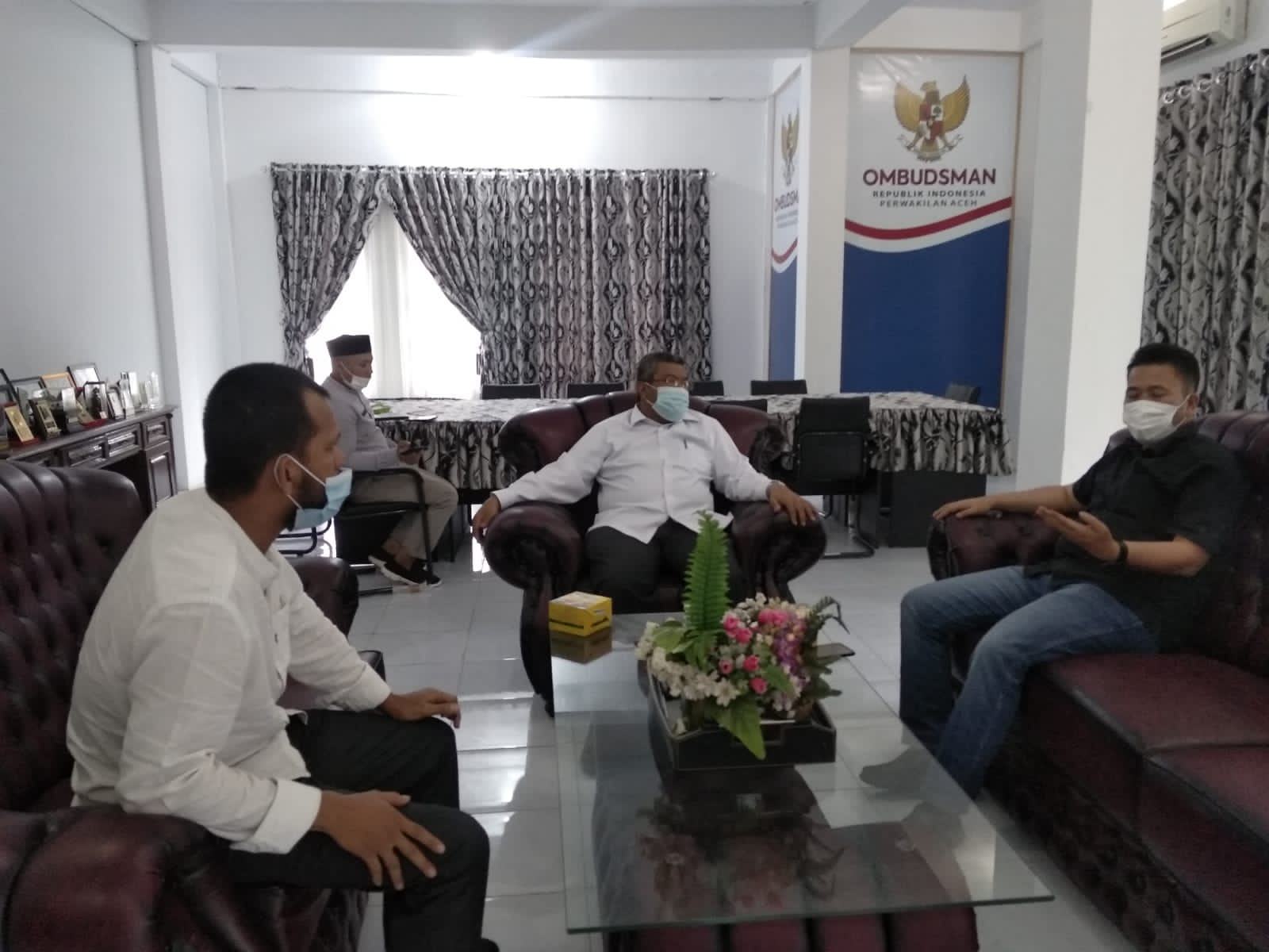 BANDA ACEH — Sekretaris Daerah Bener Meriah Haili Yoga mendatangi dan bertemu dengan Kepala Ombudsman RI Perwakilan Aceh Dr Taqwaddin Husin didampingi Kepala Bidang Pencegahan Maladministrasi, Muammar di Kantor Ombudsman, Banda Aceh, Jumat (30/7).