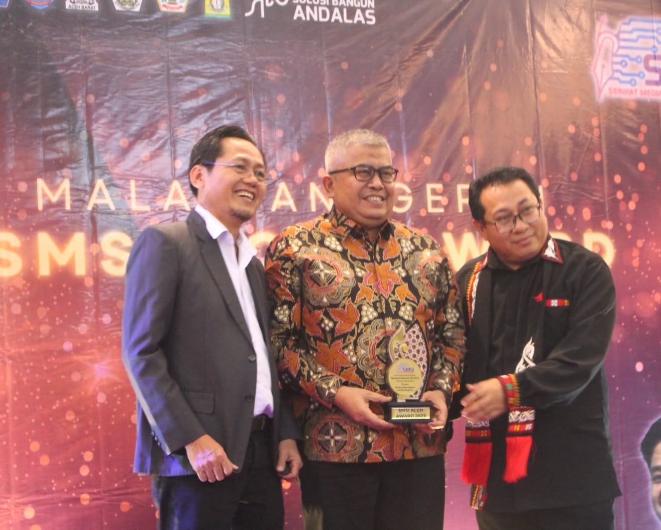 TAKENGON – Sekretaris Daerah (Sekda) Aceh Bustami Hamzah, menerima Award sebagai Birokrat Berdedikasi dan Berintegritas dari Serikat Media Siber Indonesia (SMSI) Aceh, pada acara Malam Anugerah SMSI Aceh tahun 2023, yang digelar di Ball Room Parkside Hotel, Takengon, Aceh Tengah, Senin malam (8/5/2023).