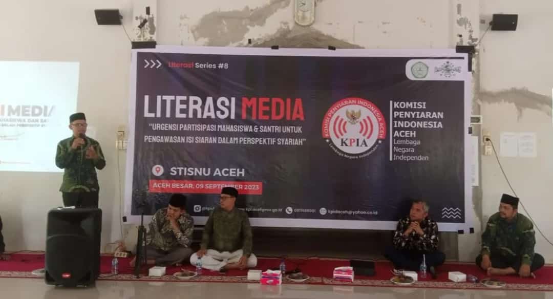 ACEH BESAR — Sekolah Tinggi Ilmu Syariah Nahdlatul Ulama (STISNU) Aceh menggandeng Komisi Penyiaran Indonesia (KPI) Pusat dan Aceh untuk memberikan kuliah umum terkait literasi media di kampus Jantong Hate Ulama, STISNU Aceh, di Dayah Mahyal Ulum Al Aziziyah, Sibreh, Aceh Besar, Sabtu, 9 September 2023.