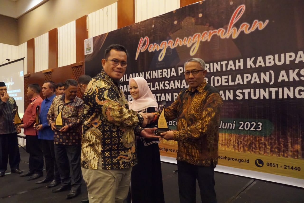JANTHO — Pemerintah Kabupaten (Pemkab) Aceh Besar meraih penghargaan sebagai kabupaten berkinerja terbaik dalam pelaksanaan 8 aksi konvergensi percepatan penurunan stunting pada tahun 2022.