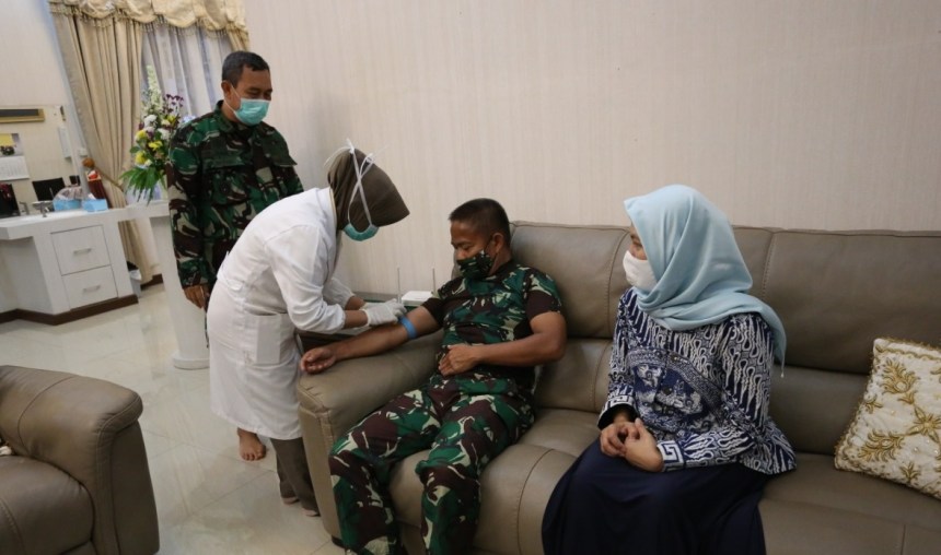 Selanjutnya, Pangdam IM beserta keluarga didampingi Kakesdam IM melaksanakan protokol kesehatan guna pencegahan Covid -19 dengan malaksanakan pemeriksaan suhu tubuh, dilanjutkan dengan pemeriksaan Rapid Test.