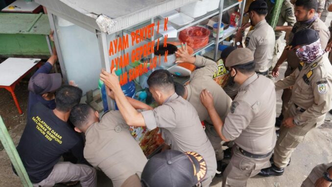 Banda Aceh — Tim gabungan dari Pemerintah Kota Banda Aceh telah melakukan penertiban beberapa bagian bangunan yang disinyalir telah melanggar ketentuan yang berlaku di beberapa titik dalam kawasan Jalan T Imum Lueng Bata, Senin (30/5/2022).